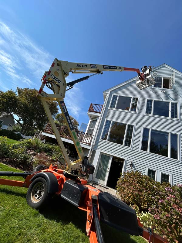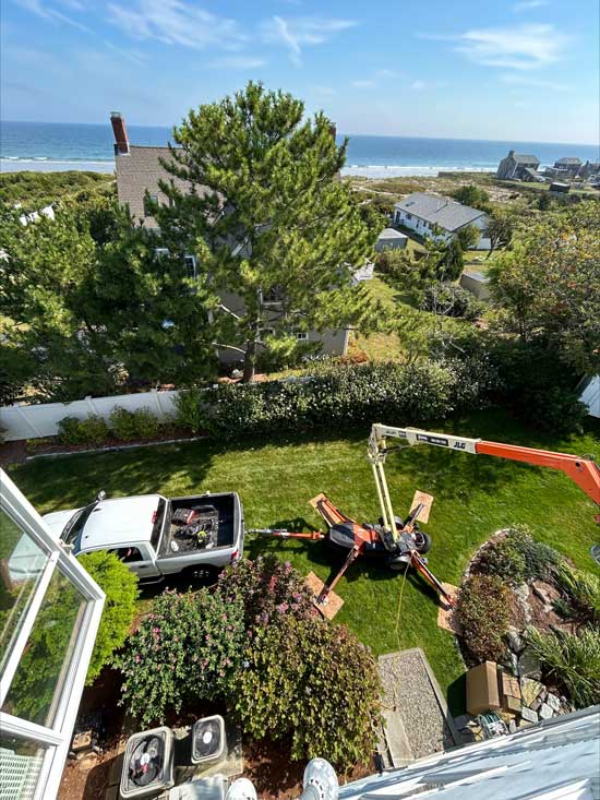 The homeowner was looking to upgrade their existing ductless systems with new, energy-efficient Daikin mini-splits. While the job itself was straightforward, the property presented some significant challenges. The yard’s steep slope and uneven terrain made using a ladder extremely difficult and unsafe for our team. At Harborside, employee safety is always our top priority.